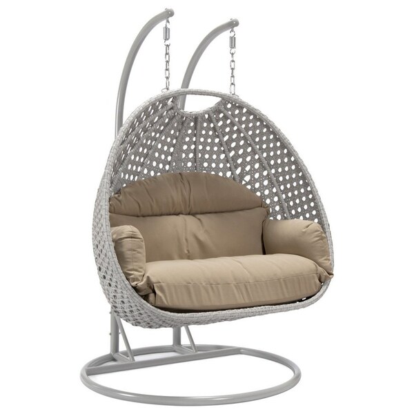 Mendoza Light Grey Wicker Hanging 2 person Egg Swing Chair with Taupe Cushions
