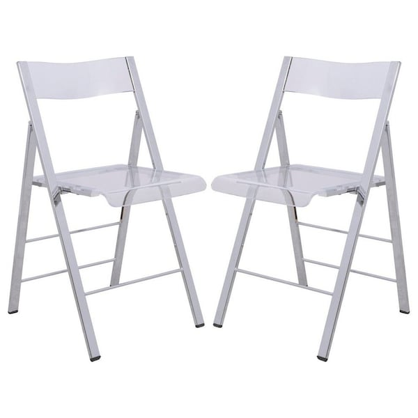 Menno Modern Acrylic Folding Chair, Clear, 2PK