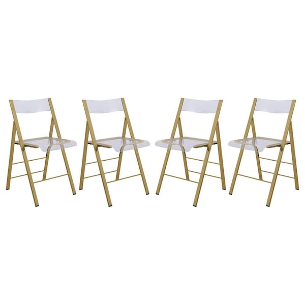 Menno Modern Acrylic Gold Base Folding Chair, Clear, 4PK