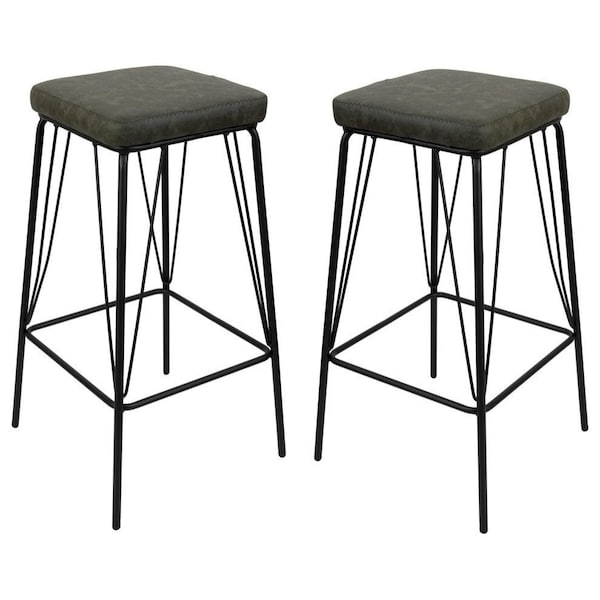 Millard Leather Bar Stool with Metal Frame, Olive Green, 2PK (Discontinued)