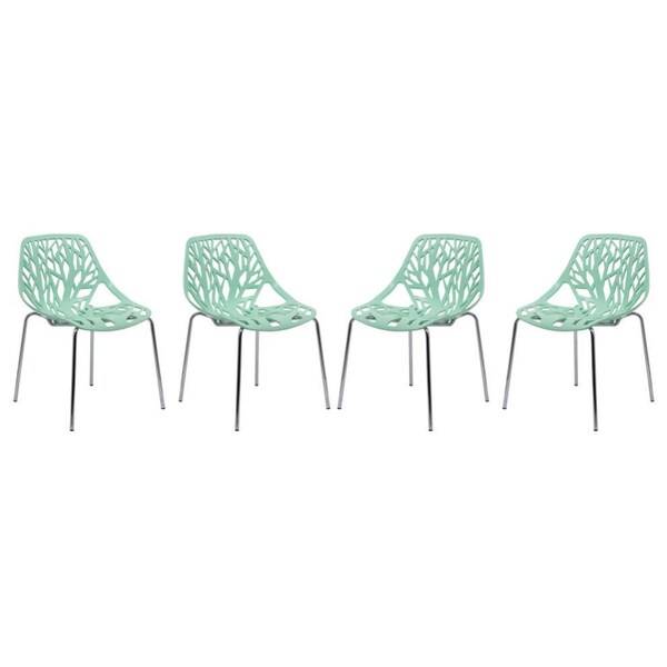 Modern Asbury Dining Chair with Chromed Legs, Mint, 4PK