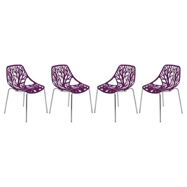 Modern Asbury Dining Chair with Chromed Legs, Purple, 4PK