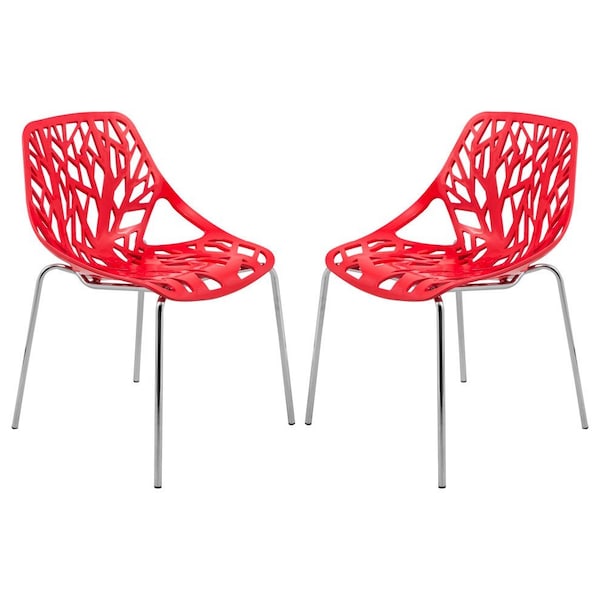Modern Asbury Dining Chair with Chromed Legs, Red, 2PK