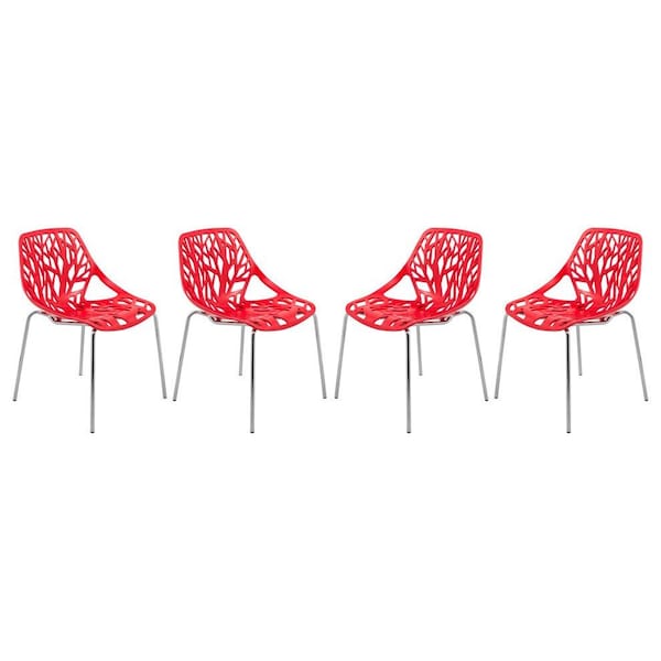 Modern Asbury Dining Chair with Chromed Legs, Red, 4PK