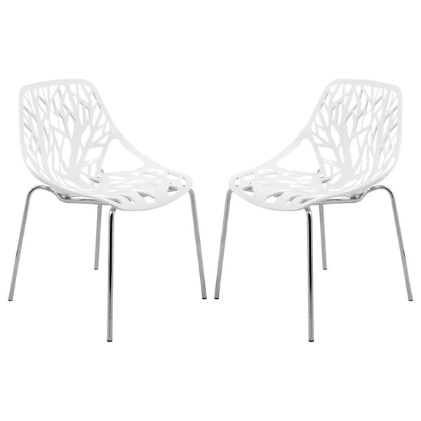Modern Asbury Dining Chair with Chromed Legs, White, 2PK