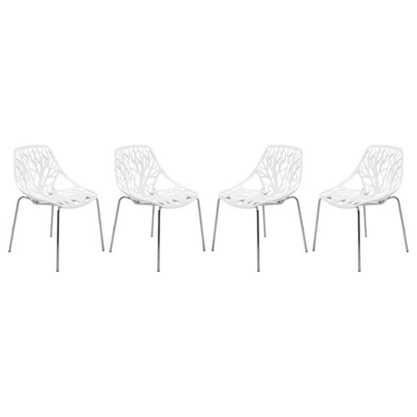 Modern Asbury Dining Chair with Chromed Legs, White, 4PK
