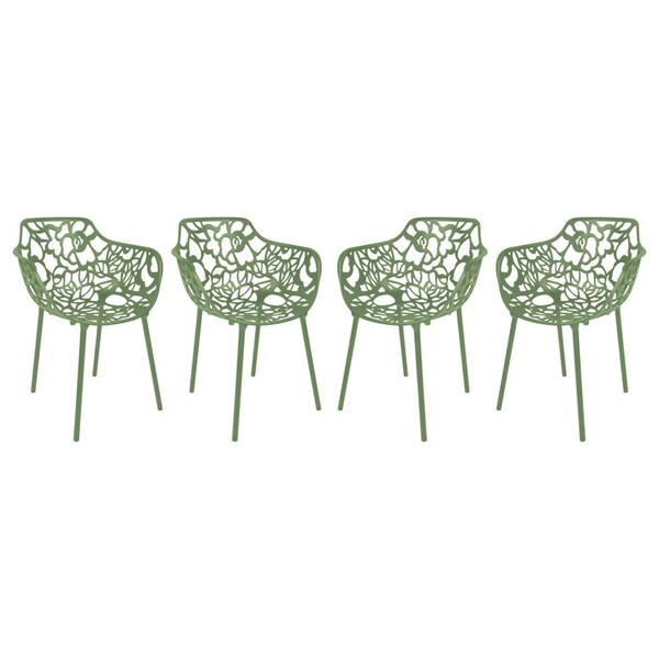 Modern Devon Aluminum Armchair, Khaki Green, 4PK