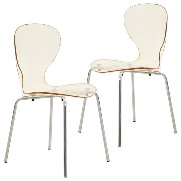 Modern Oyster Transparent Dining Side Chair in Amber, 2PK