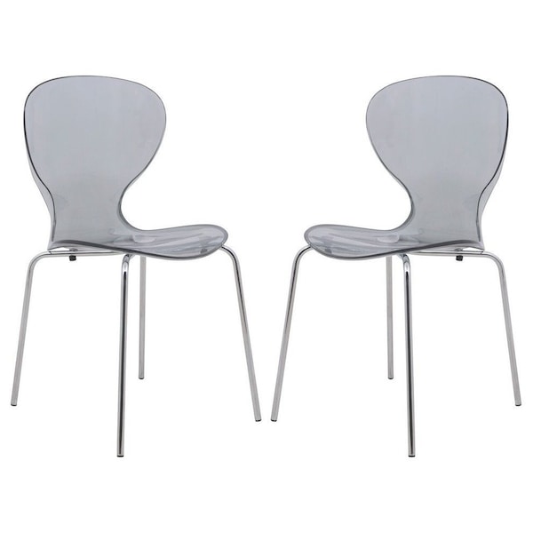 Modern Oyster Transparent Side Chair, Transparent Black, 2PK