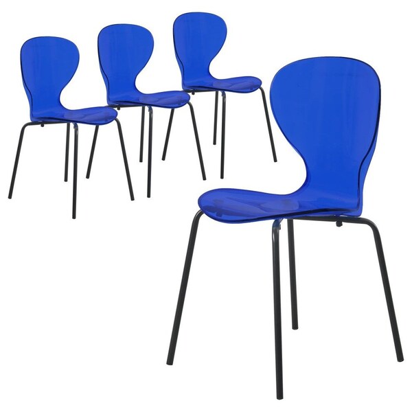 Modern Oyster Transparent Side Dining Side Chair with Black Base in Blue, 4PK