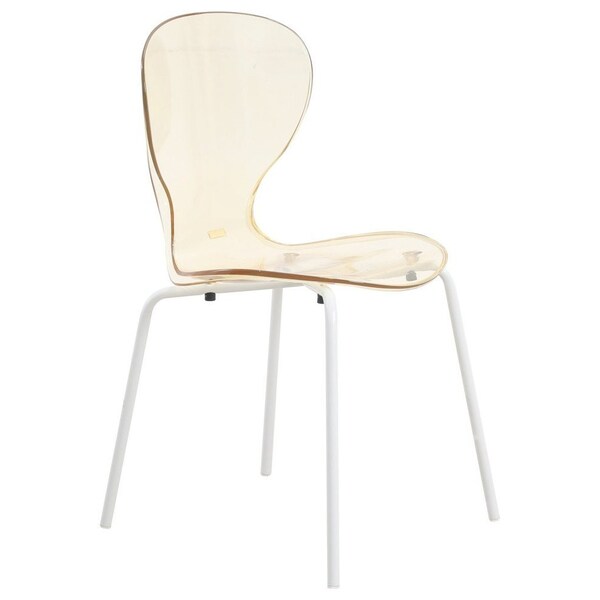 Modern Oyster Transparent Side Dining Side Chair with White Base in Amber