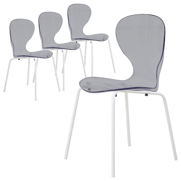 Modern Oyster Transparent Side Dining Side Chair with White Base in Black, 4PK