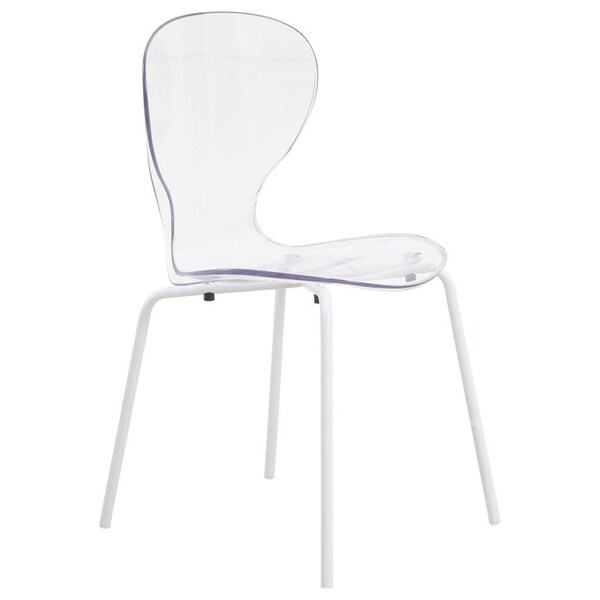 Modern Oyster Transparent Side Dining Side Chair with White Base in Clear