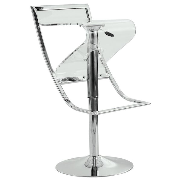 Effortlessly stylish, the Napoli Bar/Counter Stool adds a great modern accent to any setting. One look and you'll be instantly impressed with its charm. The Bar/Counter Stool offers an impressively comfortable seat for your counter or bar table. The stool features a seat made of clear thick acrylic. Its clarity makes it instantly captivating and stylishly modern. Its seat is perfectly paired with a chrome base and foot rest. It conveniently swivels and features a gas lift, making it easy to adjust its height to integrate with your counter or bar. Additionally, the stool has an added adjusted which allows you to adjust the stool even lower than a typical bar stool, to accommodate dining table height. However you choose to set the Napoli Bar/Counter Stool, its captivating look and simple modernism make the perfect addition to any contemporary space
