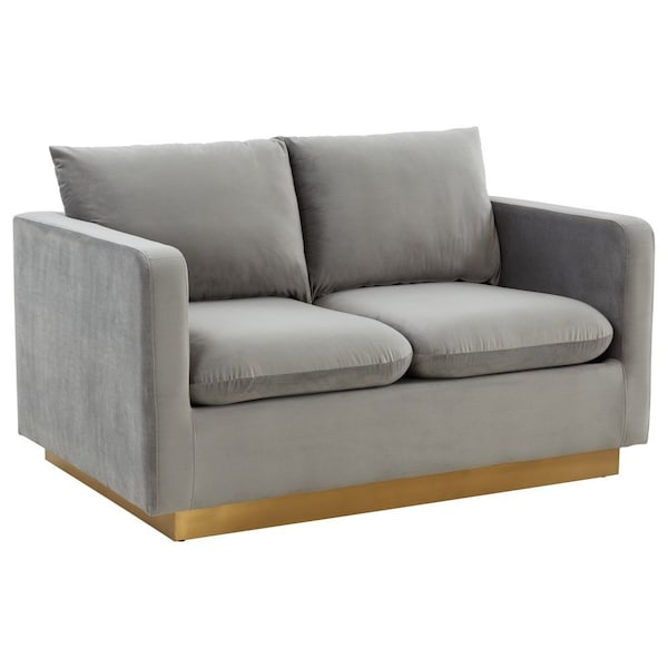 Nervo Upholstered Velvet Loveseat with Gold Frame, Light Grey