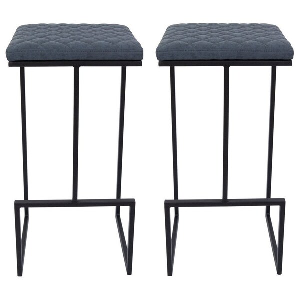 Quincy Leather Bar Stools with Metal Frame, Peacock Blue, 2PK