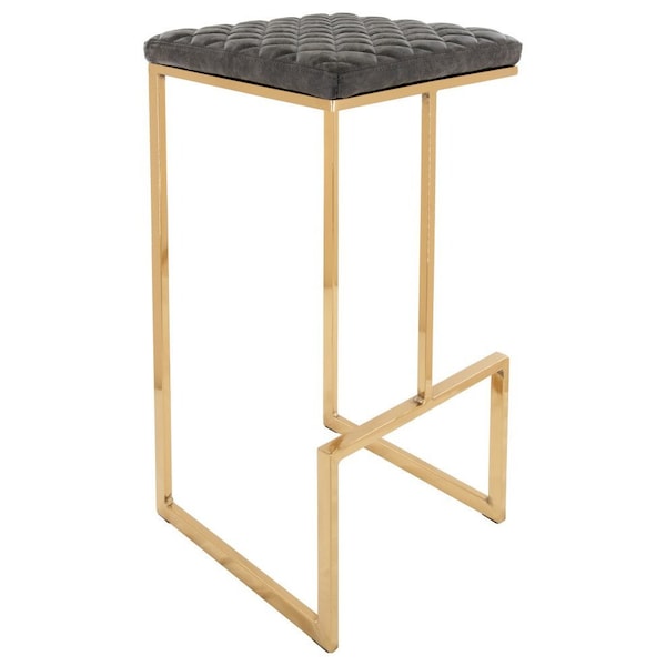 Quincy Quilted Stitched Leather Bar Stools with Gold Metal Frame, Grey