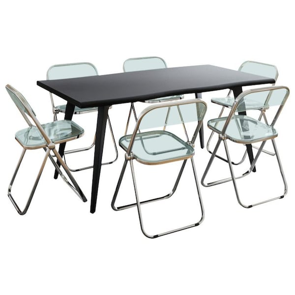 The perfect combination of style and functionality - the Lawrence Acrylic Folding Dining Chair and Rectangular Wood Dining Table Set. Designed to enhance your dining experience, these furniture pieces are built to last and provide comfort, convenience, and elegance to any space. The transparent acrylic seat and backrest of the chairs create a modern and contemporary look that adds a touch of sophistication to your dining area. One of the key features of the chairs is their foldable design, making them highly convenient for storage. Whether you have a small dining area or need extra seating for guests, these foldable chairs offer a practical solution without compromising on style. The spacious area of the table top offers ample room for comfortable dining. The table has powder-coated metal legs, designed to withstand the rigors of daily use, ensuring that your table remains steady and secure. The Lawrence Acrylic Folding Dining Chair and Rectangular Wood Dining Table Set is the perfect combination for your dining space.