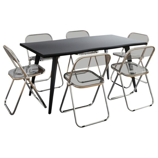 The perfect combination of style and functionality - the Lawrence Acrylic Folding Dining Chair and Rectangular Wood Dining Table Set. Designed to enhance your dining experience, these furniture pieces are built to last and provide comfort, convenience, and elegance to any space. The transparent acrylic seat and backrest of the chairs create a modern and contemporary look that adds a touch of sophistication to your dining area. One of the key features of the chairs is their foldable design, making them highly convenient for storage. Whether you have a small dining area or need extra seating for guests, these foldable chairs offer a practical solution without compromising on style. The spacious area of the table top offers ample room for comfortable dining. The table has powder-coated metal legs, designed to withstand the rigors of daily use, ensuring that your table remains steady and secure. The Lawrence Acrylic Folding Dining Chair and Rectangular Wood Dining Table Set is the perfect combination for your dining space.