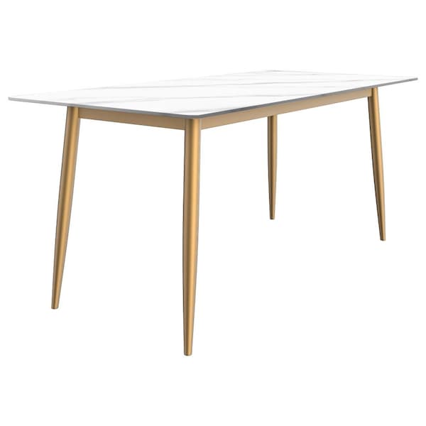 Explore the pinnacle of contemporary dining with the Zayle Dining Table. Crafted to seamlessly blend the timeless charm of mid-century aesthetics with modern functionality, the Zayle dining table stands as a remarkable expression of leisurely artistry. Topped with a generously proportioned rectangular surface, it offers an expansive canvas for culinary adventures and social gatherings. Sturdy fixed legs provide unwavering support, grounding the table with a sense of permanence for stable shared meals and cherished moments. Enhancing the dining experience, the tabletop is crafted from sintered stone, an innovative material celebrated for its durability, scratch resistance, and easy maintenance. Supported by a robust steel base featuring sleek rectangular legs, the dining table exudes opulence and sophistication with its golden hue. The steel base is meticulously coated with a powder finish, serving both an aesthetic and protective function by enhancing the visual appeal of the golden steel while guarding against wear and corrosion. Whether hosting an intimate family dinner or a festive gathering, the spacious layout ensures everyone enjoys a comfortable seat at the table. With clear and comprehensive instructions, along with all necessary hardware included, the assembly process is thoughtfully designed for a seamless experience.