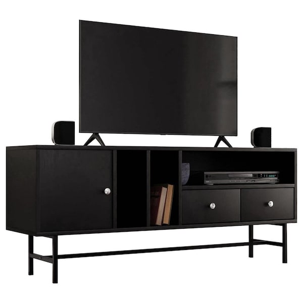 Rochester Rectangular TV Stand with Enclosed Storage and Powder Coated Iron Legs, Ebony