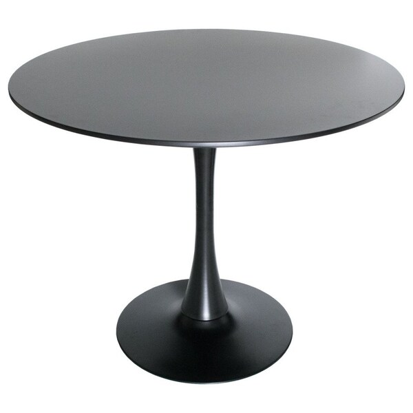 The Bristol round dining table is the perfect combination of modern mid-century design and functionality. It features a sleek iron base with a glossy finish that adds a touch of sophistication to any dining space. The pedestal base provides stability and balance, while the MDF round top provides a smooth and easy-to-clean surface that is perfect for meals and conversation. Whether you have a compact dining area or a spacious room, this dining table is designed to fit seamlessly into any space, offering both functionality and style. The easy-to-assemble design ensures that you can have it set up in minutes, allowing you to enjoy its stylish and functional design without any hassle. This modern round dining table is perfect for those who want to create a welcoming and comfortable dining area without sacrificing style or mobility. Whether you're setting up a cozy seating area in your kitchen or dining room or creating a welcoming ambiance in your cafe or restaurant, this modern round dining table is the perfect addition
