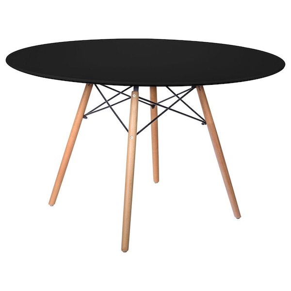 Round 48 in W, 29 in L, MDF/Beech Wood, Black