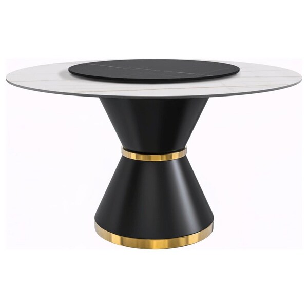 Round 60 in W, 29.5 in L, Sintered Stone/Steel, White/Gold