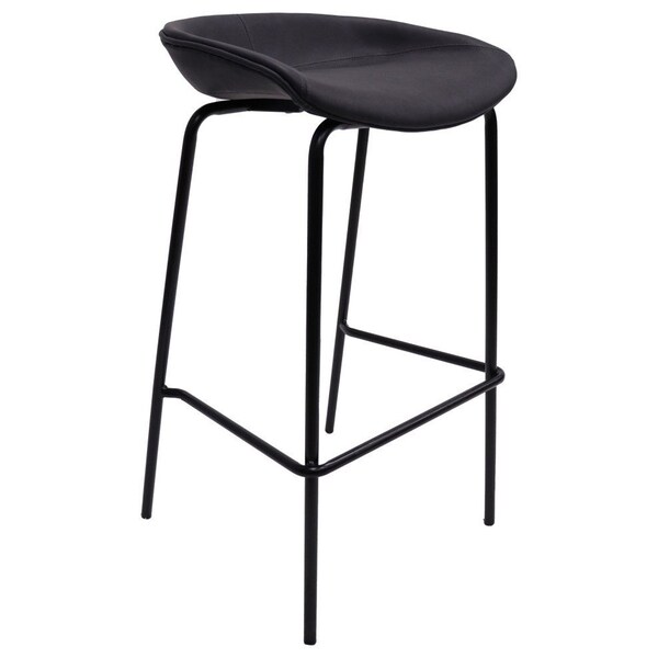 Servos Barstool with Upholstered Faux Leather Seat and Powder Coated Iron Frame, Black