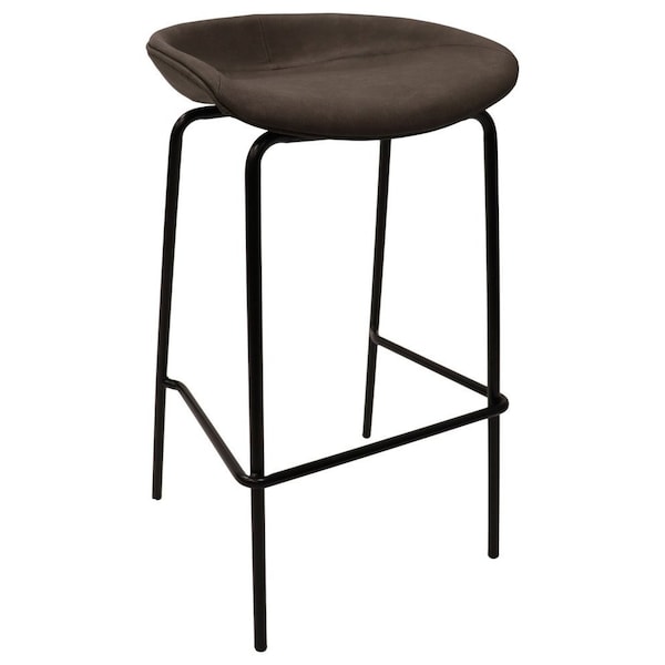 Servos Barstool with Upholstered Faux Leather Seat and Powder Coated Iron Frame, Elephant Grey