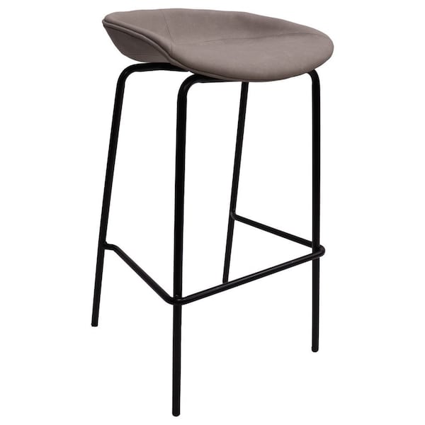 Servos Barstool with Upholstered Faux Leather Seat and Powder Coated Iron Frame, Light Grey