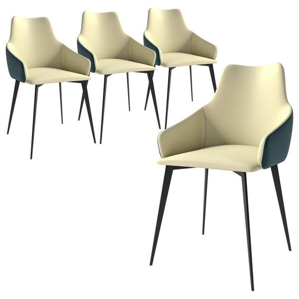 Sonnet Modern Dining Chair in Cream/Green Leather and Iron Legs, 4PK