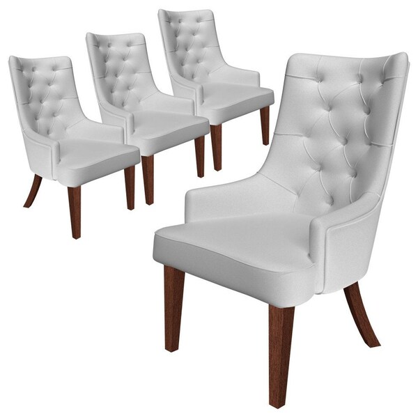 Elevate your dining experience with this elegant high-back Spruce Dining Chair, combining timeless design with modern comfort. Upholstered in luxurious tufted leather or velvet, this chair exudes sophistication and style. The high backrest offers excellent support, while the gently curved arms provide a comfortable seating experience. Constructed with durable rubberwood legs stained in a rich walnut color, this chair ensures lasting stability and elegance. The seat is filled with soft sponge padding for superior comfort, making it ideal for long dinners and gatherings. Designed for versatility, this chair fits seamlessly into both dining and living spaces, adding a touch of luxury to any room. Its pristine white leather finish is easy to maintain, making it perfect for everyday use.