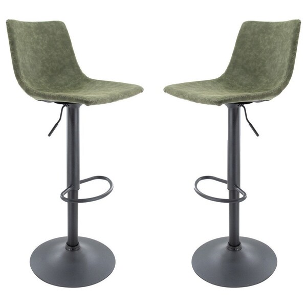 Tilbury Modern Adjustable Bar Stool with Footrest and 360-Degree Swivel, Olive Green, 2PK