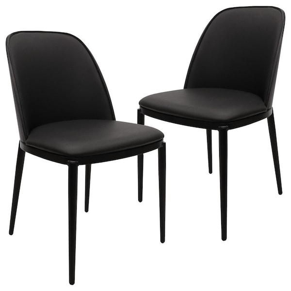 Tule Dining Side Chair, Black Frame with Black Leather Seat, 2PK