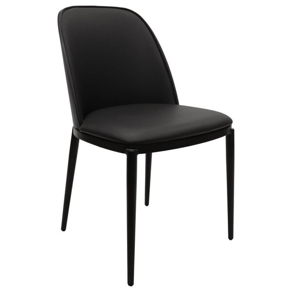Tule Dining Side Chair, Black Frame with Black Leather Seat