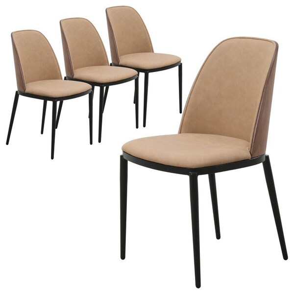 Tule Dining Side Chair, Walnut Frame with Brown Leather Seat, 4PK