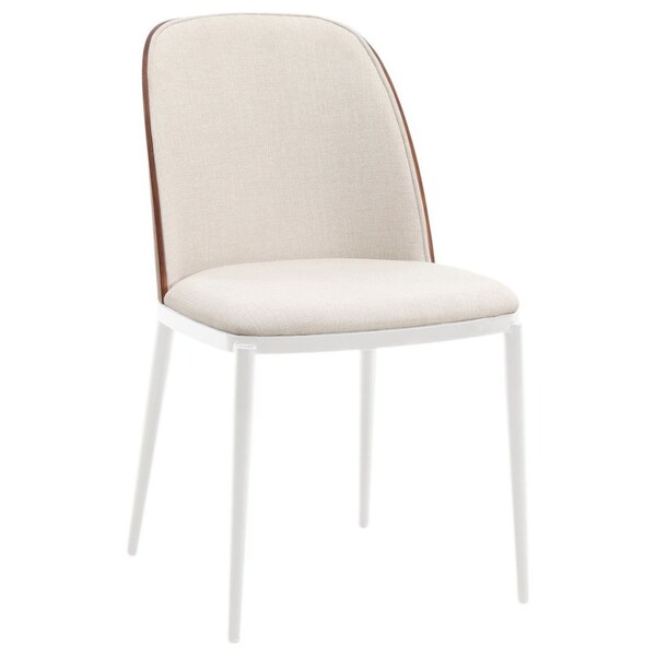 Tule Fabric Dining Side Chair with White Powder-Coated Steel Frame, Walnut/Beige