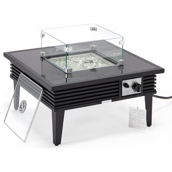 - •The modern square fire pit table features a powder-coated finish, providing a sleek and durable surface. This finish not only adds a touch of elegance but also protects the aluminum frame from corrosion, and other outdoor elements.