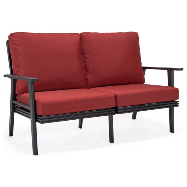 Walbrooke Patio Loveseat, Black Aluminum Frame & Removable Cushions, Red (Discontinued)