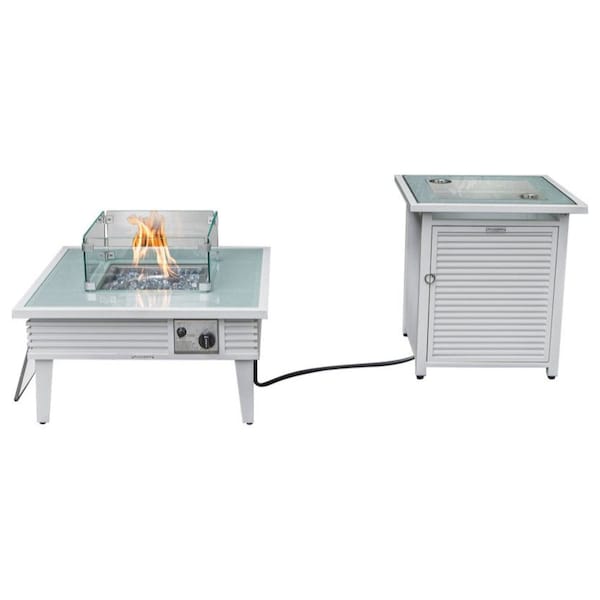 Walbrooke Patio Square Fire Pit and Tank Holder with Slats Design, White