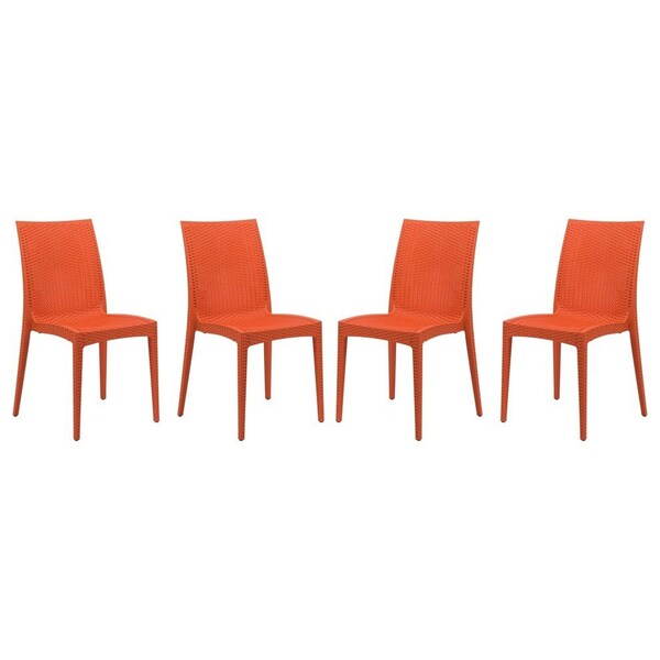 Weave Mace Indoor/Outdoor Dining Side Chair, Orange, 4PK