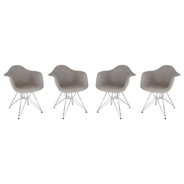 Willow Fabric Eiffel Accent Chair with Chrome Base, Grey, 4PK (Discontinued)