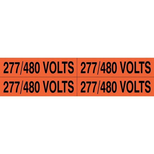 Conduit and Voltage Markers, Label Size W x H 4 1/2 in x 1 1/8 in, Label Type Self-Stick Vinyl, Legend 277/480 Volts, Markers per Card 4, Character Height 7/8 in, Legend Color Black, Background Color Orange, Label Style B