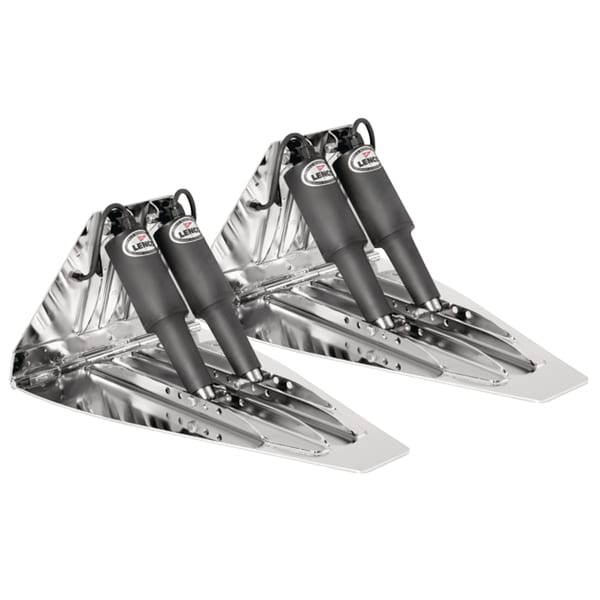 Radiused blades give maximum clearance for multiple outboard applications and reduces cavitation to the prop. The stylish design gives maximum performance and is built for extreme duty applications. Extreme duty actuators with 3/8" stainless steel bolts, 6-foot leads and Deutsch connectors. Min. transom height: 10.5".Kit Includes:7-gauge flat-304 electro-polished stainless steel blades with 3-3/4" sacrificial anodesFull transom back plate with adjustable C-channel and 3/8" stainless steel bolts and 3/8" stainless steel hinge pinsMechanical strain relief cable sealCustomer supplies mounting hardwareActuator extension harness sold separately in lengths of 7', 14', 20', 26' and 32'Switch Kits sold separately