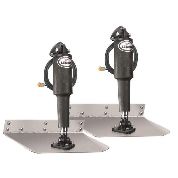 Lenco Electric Standard Mount Trim Tab Kits make your boat ride smoother, drier, faster and with increased safety whether on a small skiff or a large yacht. The Lenco ballscrew design is more reliable, three times more powerful and features an instant response, which makes them very user friendly compared to typical hydraulics. Lenco fast response electric actuators are fully submersible with all plug & play waterproof Deutsch connections. Trim Tab blades are 12 Gauge - 304 SS with a 5/8in flared trailing edge and 1/8in diameter hinge pin. Kits include standard actuators with 5/16in SS bolts. Specifications Size: 12in x 12in Dimension: 18in H x 5in W x 12.75in L Weight: 18 lbs