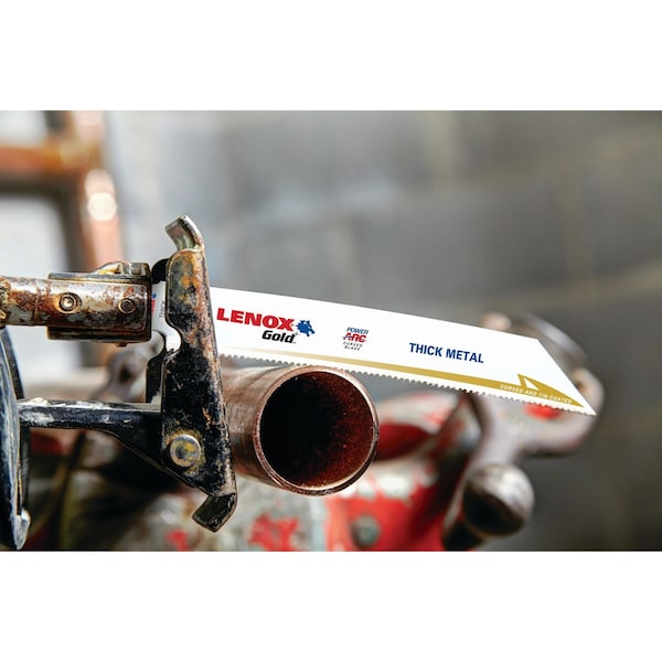 Lenox Gold Power Arc Curved metal reciprocating saw blades deliver up to 2X longer life vs. traditional straight LENOX recip blades