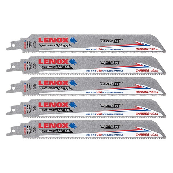 Reciprocating Saw Blade, Materials Cut Ferrous Metals, Blade Length 9 in, Blade Width 1 in, Teeth per Inch 10, Blade Thickness 3/64 in, Cut Width 0.05 in, Blade Material Carbide, Tip Material Carbide, Back Style Straight, Number of Cutting Edges 1, Cutting Edge Style Flexible for Curved Cuts, For Use With Saw Type Reciprocating Saws, Package Quantity 5