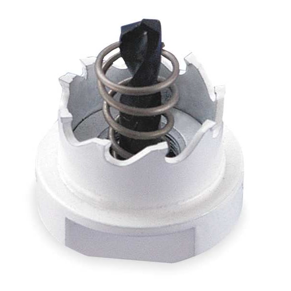 Hole Cutter, Max. Cutting Depth 3/8 in, Tooth Material Carbide Tipped, Number of Teeth 3, Thread Size 1/2 In.-20, Replacement Arbor No. Mfr. No. 300055L, Shank Size 3/8 in, Pilot Drill Size 1/4 in dia, Replacement Pilot Drill No. Mfr. No. 3087935PD, Application Stainless Steel, Steel, Copper, Brass, Aluminum, PVC, and Fiberglass, Includes Pilot Bit, Plug Ejection Spring