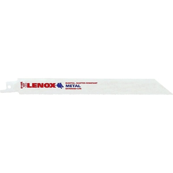 The LENOX 20578818R is a reciprocating saw blade with an 8 in length, bi-metal construction, and 18 teeth per inch. These attributes define the blade’s size, material, and tooth density and indicate compatibility with reciprocating saws that accept 8 in blades; 18 TPI tooth pattern and bi-metal construction.